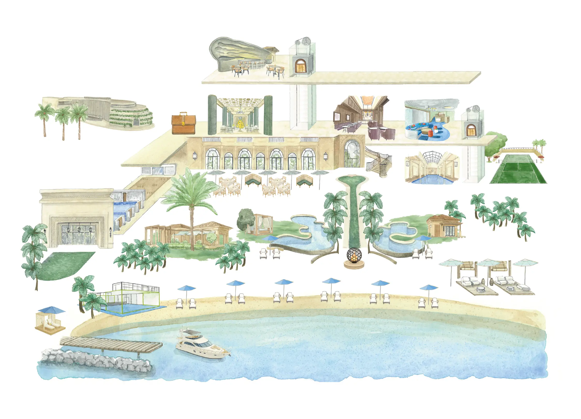 Find your way around the Resort’s most iconic spaces — from the private beach and serene pools to signature restaurants. Everything you need for a perfect stay, right at your fingertips.